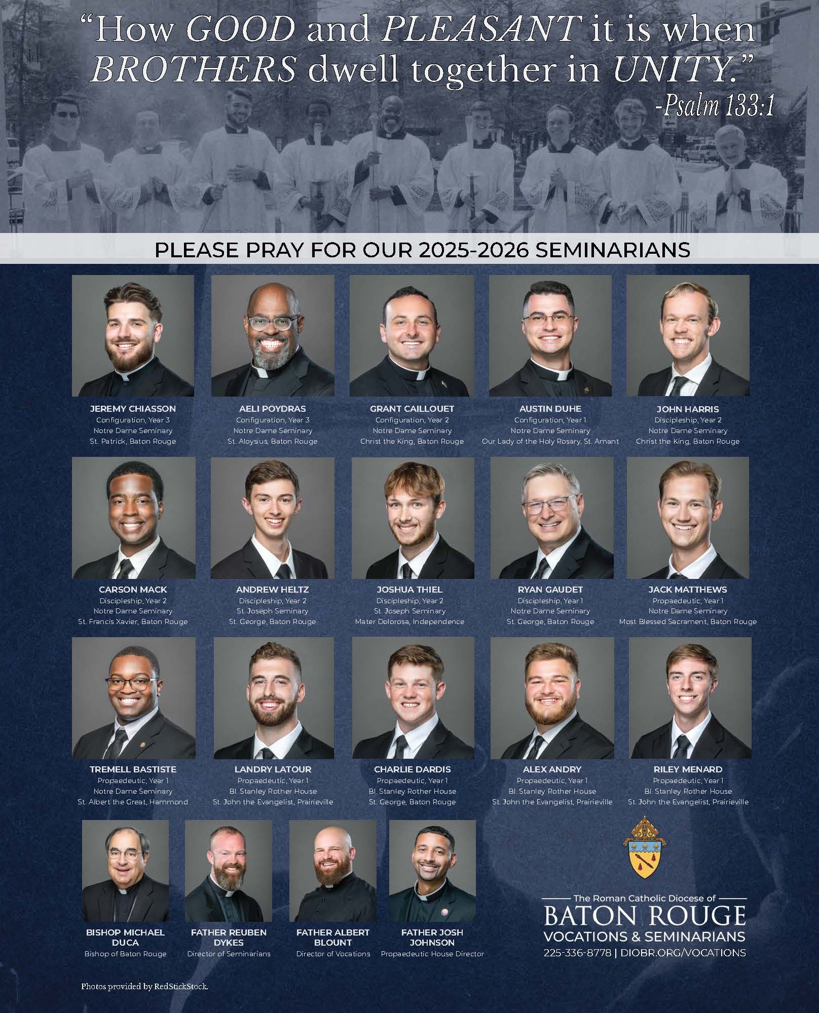 The Vocations Office is happy to send you one or more posters for your parish or institution. Simply contact us at [email protected] or 225-387-0561 and let us know how many you need.